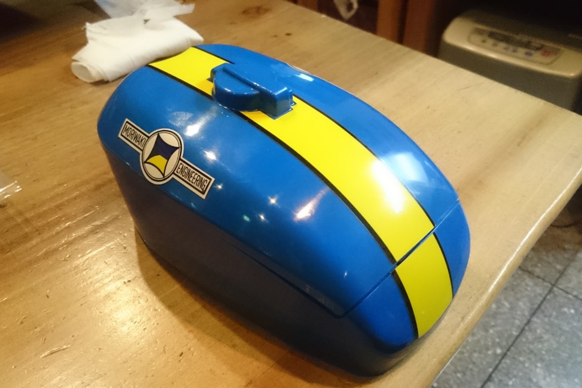 ここではバイクのタンクの形をしたケースにお弁当が入っています。