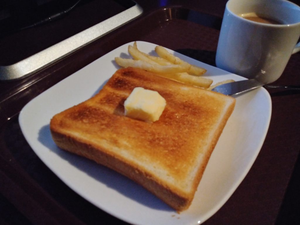 朝起きてソフトドリンクを飲みに部屋から出るとサービスでポテトとトーストが食べ放題でした。