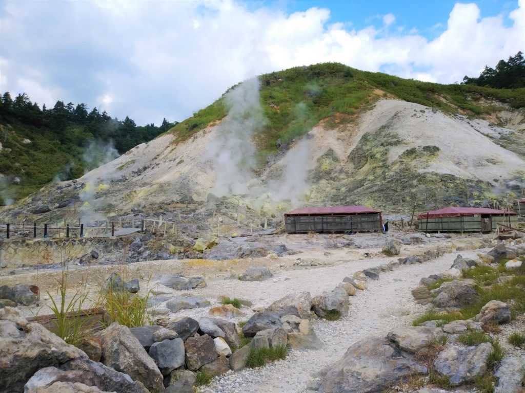 ここは十和田八幡平国立公園の一部で、1キロほどの遊歩道を歩きながら様々な火山現象が見れる場所です。