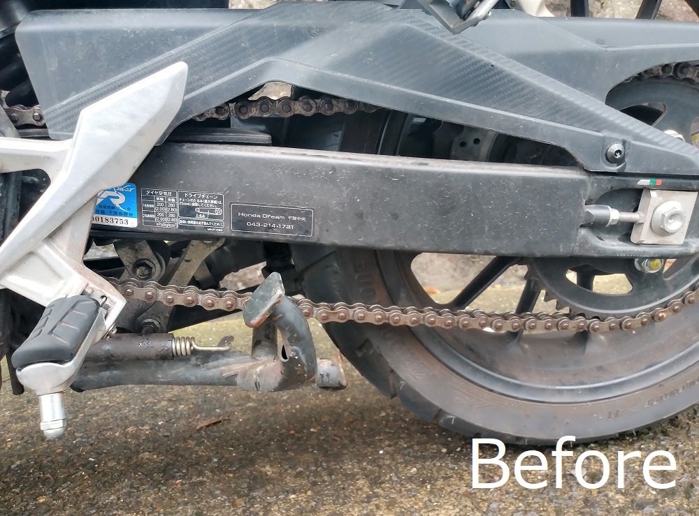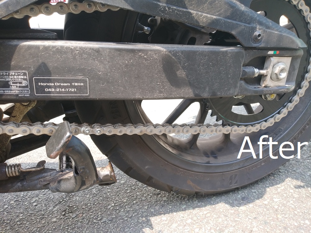 長崎県のホンダドリームで、たるんだチェーンの調整はしてもらったのでお店に着くまではなんとか持つと思いますが少し不安です (^-^;