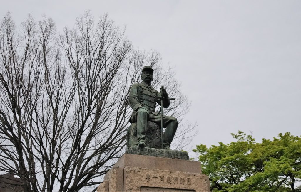 明治10年の西南戦争で熊本鎮台司令長官だった谷干城の像。