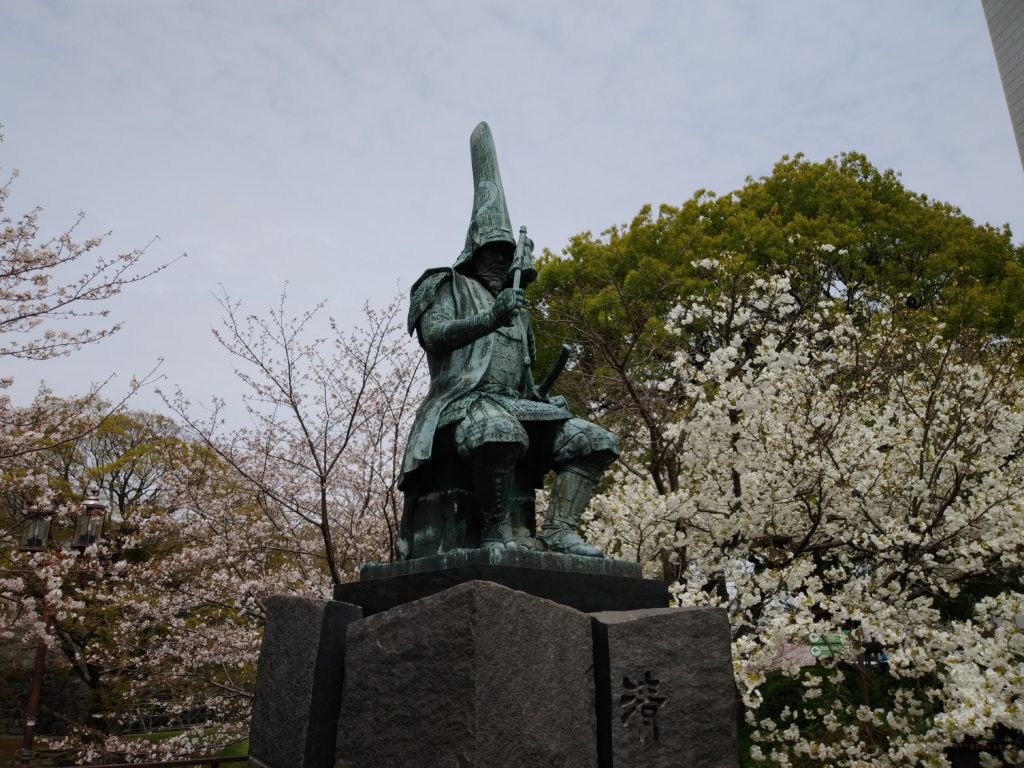 熊本城を築いた加藤清正(かとうきよまさ)の像。