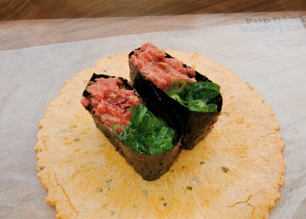 そして最後に熊本県といえば馬刺し、こちらのお店「馬刺し ・ 馬肉 専門店 菅乃屋 熊本 城彩苑 桜の小路店」では馬刺しの軍艦巻きが食べれるそうです。