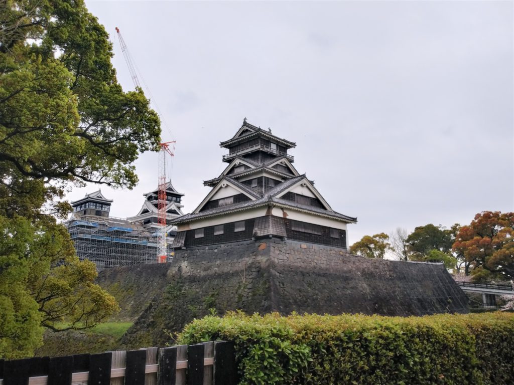 熊本城は2016年の熊本地震で破損したため、現在は復旧工事中です。