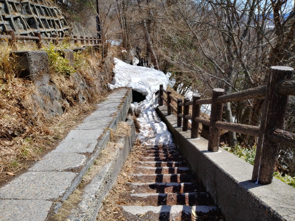 少し凍結してるいろは坂を登ります。