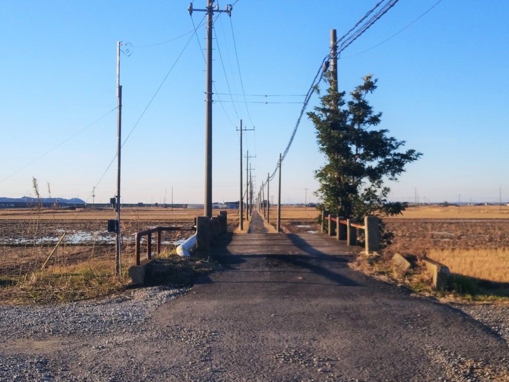 農道と電柱。