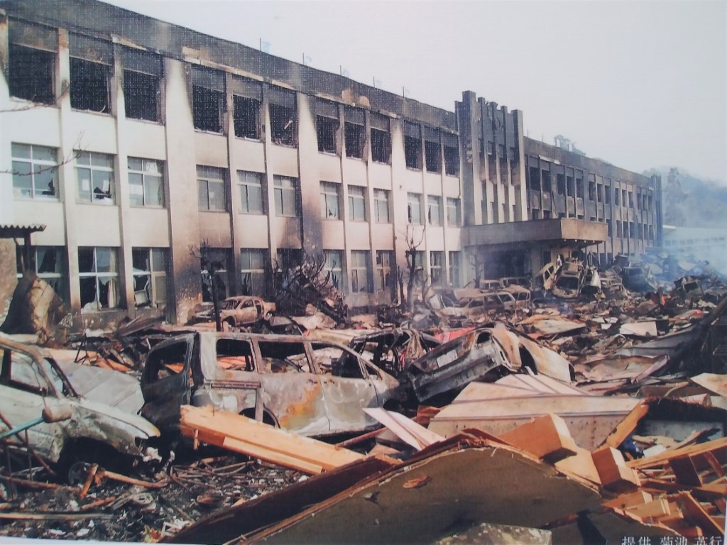 そして避難が終わり小学校に戻るとそこには変わり果てた校舎の姿。