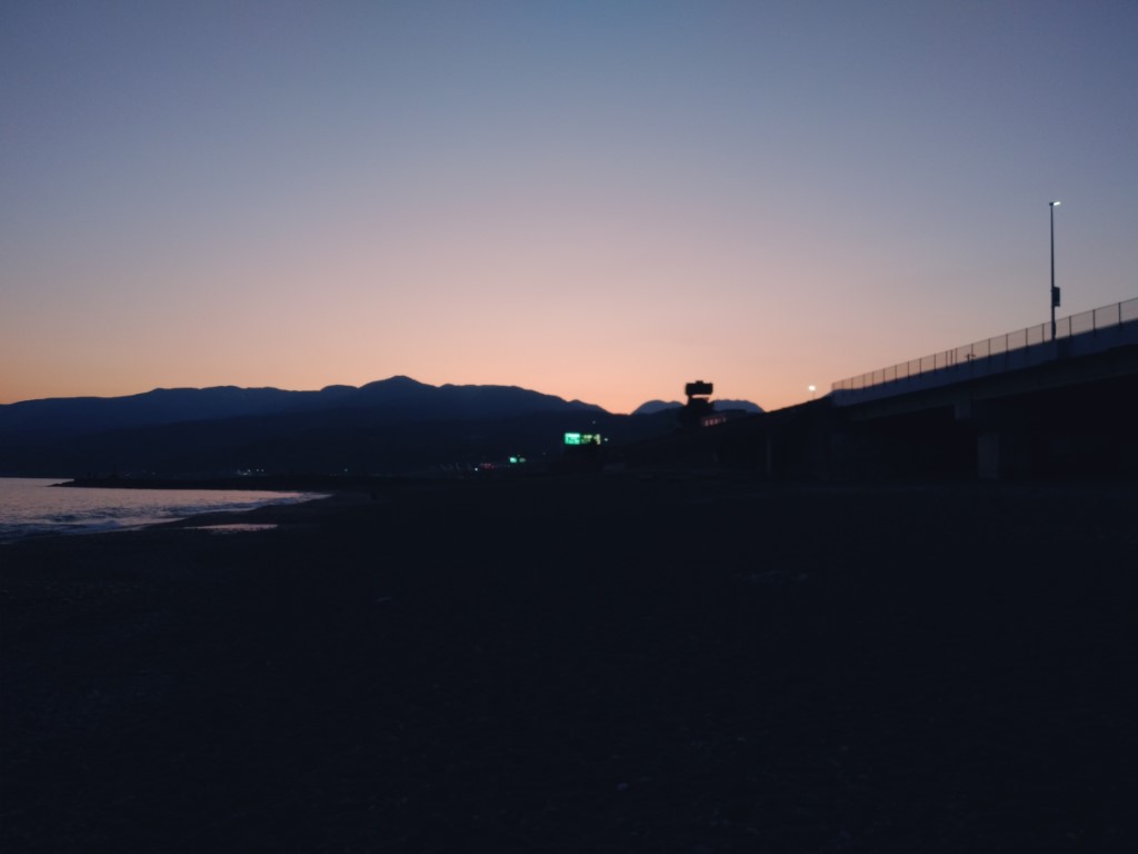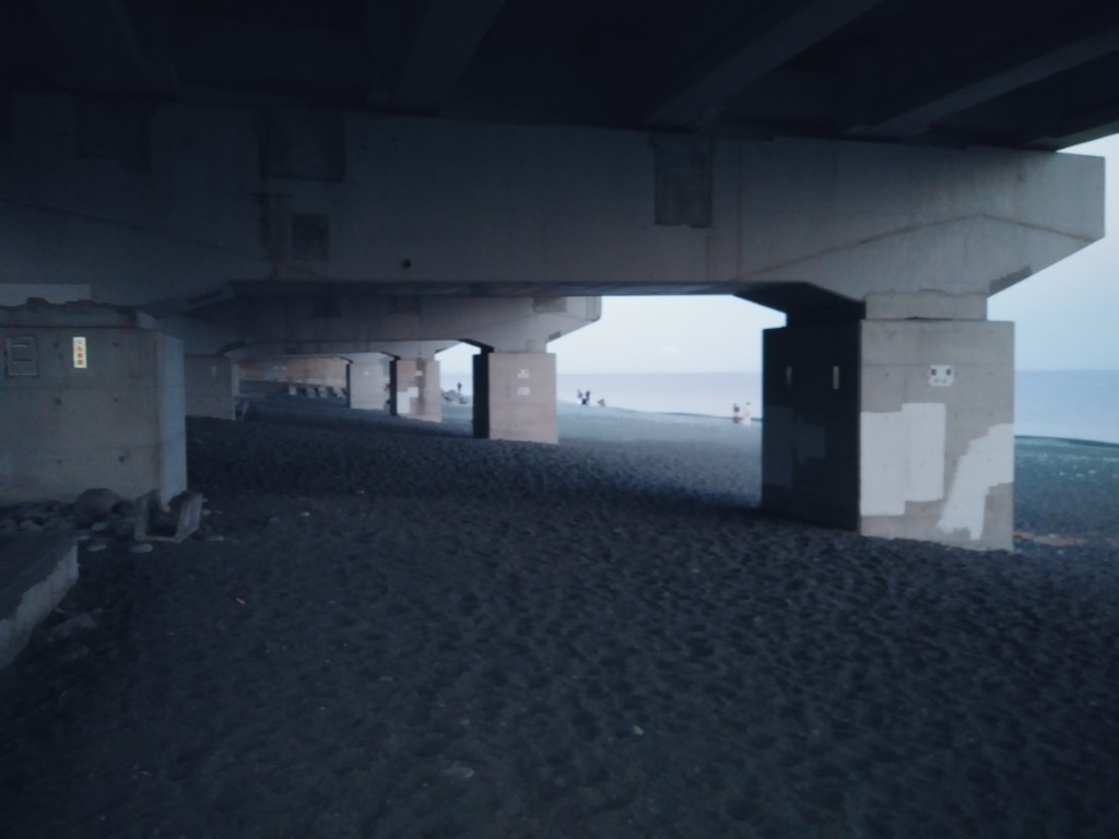 そして浜へ向かって歩き振り替えると高速道路がこんなにも近くに見えます。