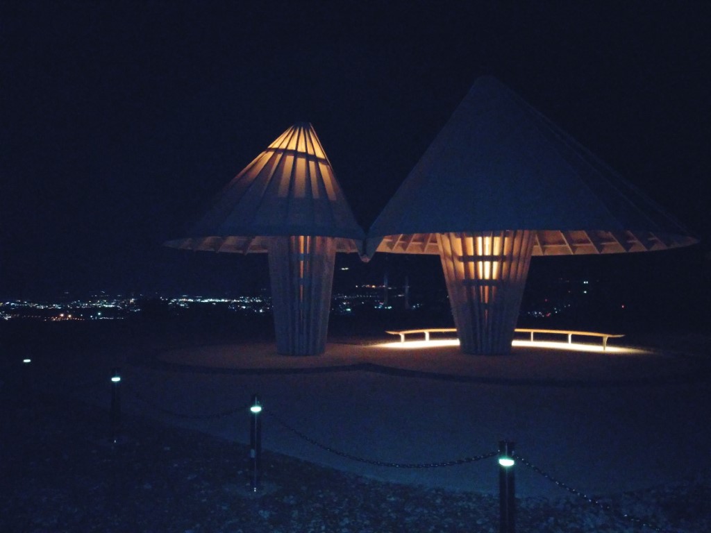 この景色を見る前の話ですが夕方になると結構寒くなってくるのでコンビニでカップラーメンを食べました。