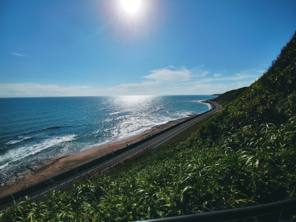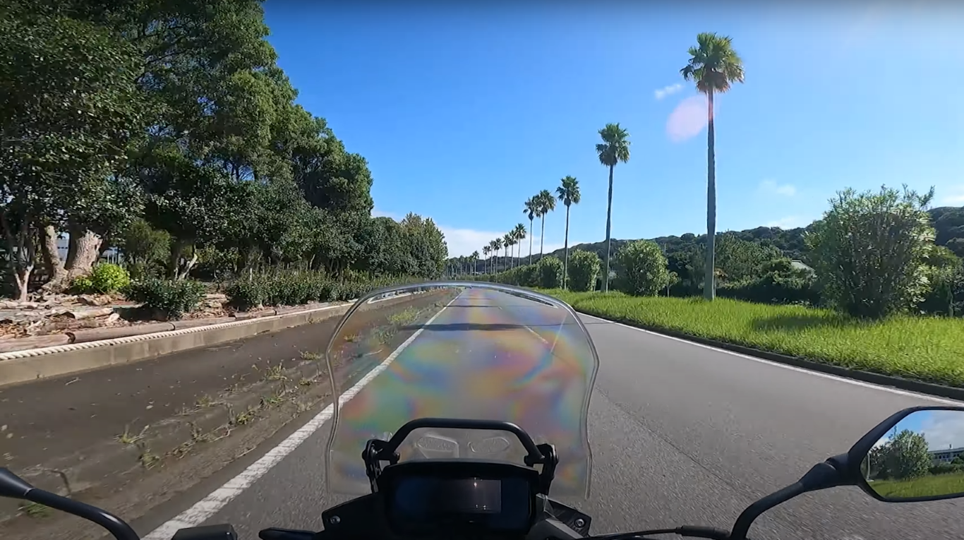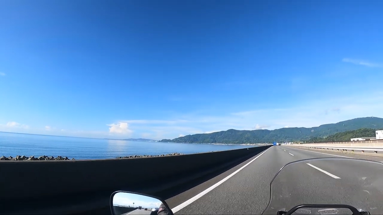 左手の海と真っ直ぐに伸びる道、バイクで走りたい道ってこういう所ですよね。