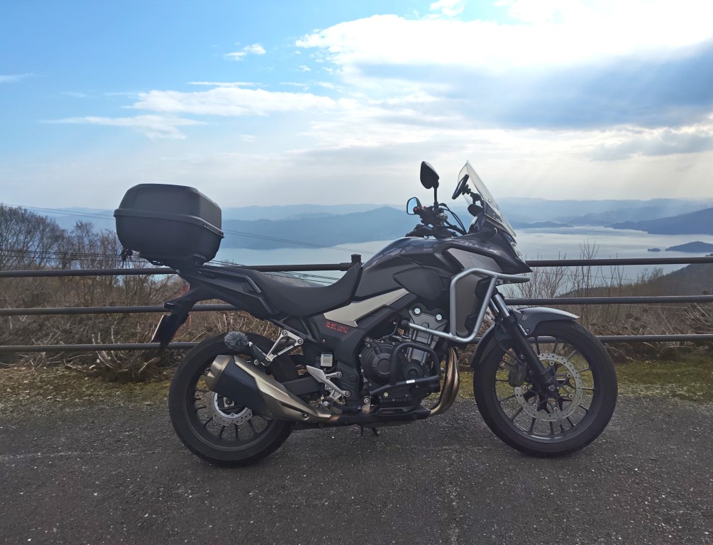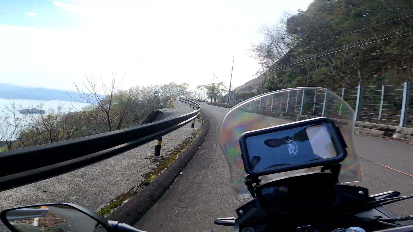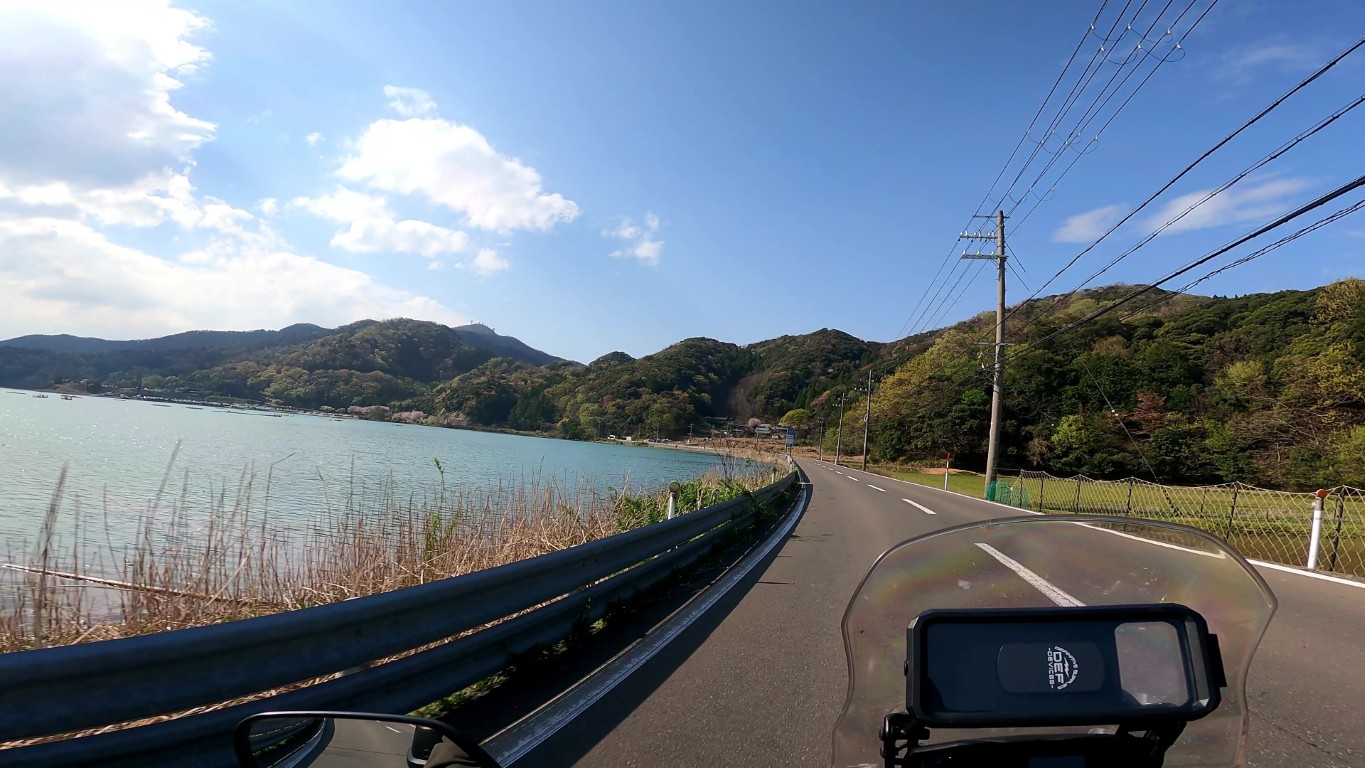 水色に光る三方五胡を眺めながらのツーリングは最高です。